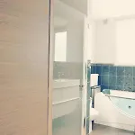חדר אמבטיה עם מקלחת בעמידה, אמבטיית ספא ואמבטיה גם כן מסופק עם מייבש ומייבש שיער.